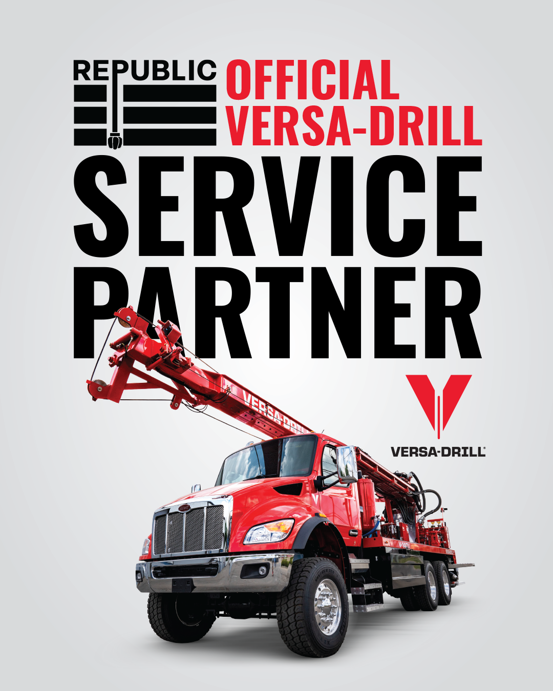 Republic Drill Co. is the only trained and certifed manufacturer’s representative recognized and approved by Versa-Dril. No warranty or support work performed by any other service provider will be authorized or approved by Versa-Drill.